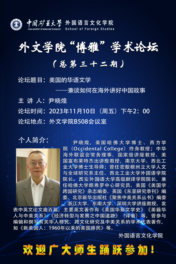 太阳成tyc122cc“博雅”学术论坛(总第三十二期)美国的华语文学——兼谈如何在海外讲好中国故事