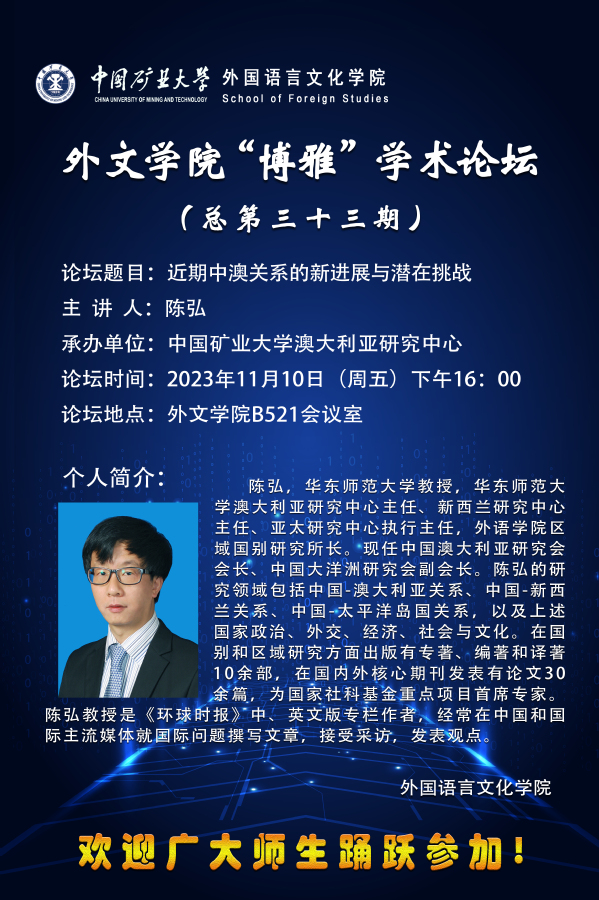 太阳成tyc122cc“博雅”学术论坛(总第三十三期)近期中澳关系的新进展与潜在挑战