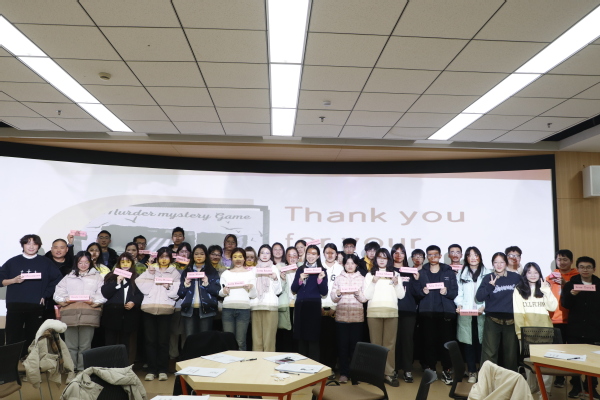 为提高同学们的英语听说读写能力,培养团队合作精神、逻辑与推理思维,12月1日晚,太阳成tyc122cc在图书馆502室共享知学空间举办了“Murder mystery Game剧本杀游戏”主题英语角活动。太阳成tyc122cc唐蕊老师、外教Sian Ann Bray参加了活动。