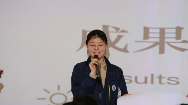第三环节是成果汇报。同学们总结整理各环节中出现的各种问题和解决办法,走上舞台向大家分享小组讨论成果。他们在大家面前勇敢地用英文表达,不怕错、敢犯错,让英语不再只限于书本里题目中,而让它真正走进了日常生活的实际应用,躬行胜知。