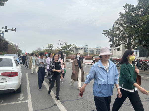 这次校园健步走活动是庆祝校庆系列活动之一,旨在让广大教职工放慢脚步,加强锻炼,感受运动的快乐,增进同事间的沟通和交流。