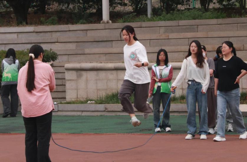 本次活动类型丰富,分为集体项目与个人项目。在集体项目“跳大绳”和“海底传月”中,同学们积极参加,合作完成项目。在个人项目“呼啦圈”“踢毽子”“定点投篮”“二人三足”“青蛙部队”“托球接力”,选手们信心十足,展现个人风姿,成为操场上一道道风景线。