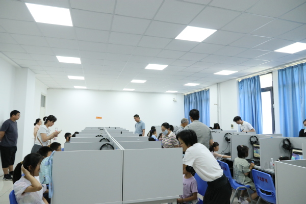 在信控电工电子实验室,电子电工领域的专家老师为参与活动的老师和孩子们上了一堂生动形象的电路启蒙课。接着,在老师的指导下,教职工与子女们都跃跃欲试,现场体验机器人编程,探索科技的奥秘。此后,在公司实验中心主任张慧琴老师的带领下,活动人员共同参观了太阳成tyc122cc同声传译实验室和虚拟仿真实验室,苗燕、官濛两位老师现场讲解口译虚拟仿真项目,教职工与子女亲自动手操作VR软件,感受身临其境的翻译情景。