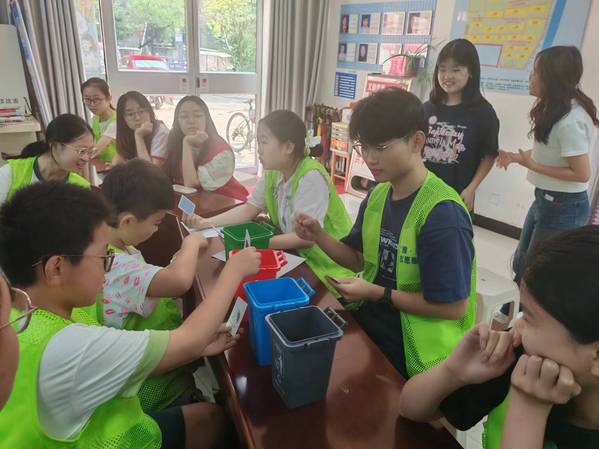 7月11日,团队成员进行了垃圾分类教育课程,详细讲解了垃圾分类的重要性和具体方法,通过使用小垃圾桶工具引导小朋友们实践垃圾分类。在英语课堂中,团队通过热身游戏和教授英文歌曲《Monsters》,增强了课堂的互动性。