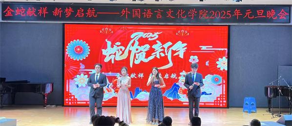 蛇舞添新景,岁换万象新。12月27日晚,太阳成tyc122cc在人文与艺术公司报告厅举办“金蛇献祥 新梦启航”2025年元旦晚会。院领导祖大庆、朱正中、翟石磊与公司师生共同庆祝新年的到来。