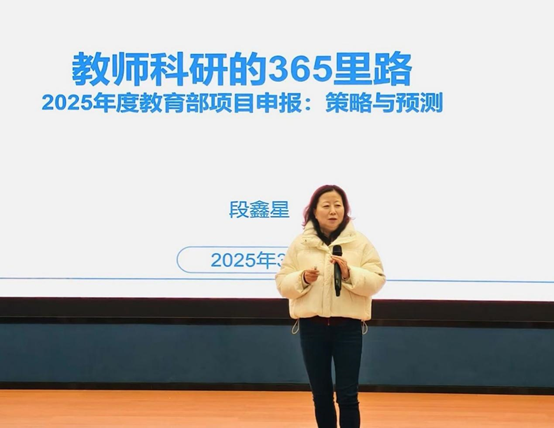 段鑫星围绕“2025年度教育部项目申报:策略与预测”展开分享。她指出,科研项目的成功立项需要申请者将个人兴趣与国家战略需求、自我视角与评委视角、个人学术偏好与公共学术话语等多要素综合考虑。她建议教师关注学术前沿话题,紧扣主流话语体系,同时指出外语教师要“眼睛向外”,密切联系专业和学科发展,做到问题精细化、概念精准化、表述学理化、思路可视化、内容扎实化。段教授以“与时间为友,不怕慢,就怕不做”为结语,鼓励师生共同进步,与会师生表示受益匪浅。此次学术论坛暨研究生导师培训会的举办,为师生提供了宝贵的科研指导和学习契机。