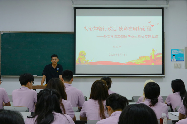 朱正中以“初心如磐行致远 使命在肩拓新程”为题,从“不忘来时路:从历史选择中坚定信仰”“走稳脚下路:在身份转换中严守规矩”“奋进未来路:于时代浪潮中践行价值”等三个方面进行讲解。首先,他以人民英雄纪念碑为切入点,解读纪念碑碑文的深刻内涵并介绍了每块浮雕背后的重大历史事件,系统回顾了自鸦片战争以来,无数仁人志士为争取民族独立和人民自由幸福,前赴后继、艰苦探索的历程。他强调,中华民族近代180多年、中国共产党成立100多年、中华人民共和国成立70多年的历史已经充分证明,历史和人民选择中国共产党是必然结果。中国共产党100多年来带领人民群众进行开天辟地、改天换地、翻天覆地和惊天动地的伟大斗争,用百年辉煌成就诠释了党对历史和人民的不负使命,我们必须坚持党的领导。接着,通过典型案例分析,并结合中央八项规定精神学习教育,着重强调党规党纪学习教育的重要性。他告诫毕业生党员要学纪、知纪、明纪、守纪,防止毕业即褪色的风险,要始终对党忠诚,保持廉洁自律,坚守纪律底线,不越行为红线,争做新时代合格共产党员。最后,他对毕业生党员提出殷切期望。他希望大家坚定理想信念,时刻牢记党员身份,发挥示范引领作用,始终以党员标准严格要求自己。坚持终身学习,不断提升个人修养,将个人发展与国家发展同频共振,勇做有责任、有担当、有作为的新时代青年。