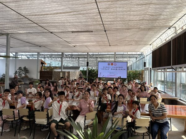 启动仪式结束后,第三期“蒲公英计划—乡村公益外语课堂”“大手牵小手”劳动润童心实践活动,在南湖校区劳动教育实践基地举行。“这里真是太有趣啦,蔬菜‘喝’着营养液就能长大”,在智能绿色生态劳动教育实践基地,小员工们感叹着科技的魅力。多肉栽培活动中,志愿者和小员工们用手中的画笔,描绘陶土花盆,移栽多肉,精心调整植株形态,在劳动中感受自然之美。活动后,小员工们结伴游览校园,穿过不显山,来到鹿园,看到小鹿在园内自由跑跳,小员工们欢快得像小鹿一般。
