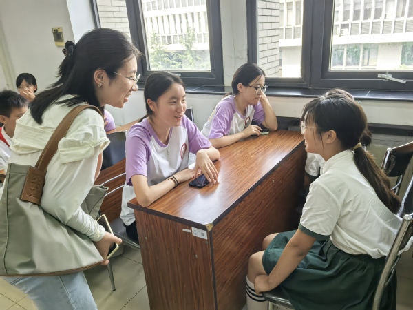第二期志愿者代表王潇悦回顾并分享了参与公益外语课堂的收获与感悟。小员工代表陈梓琦对志愿者们的辛勤付出表达了感谢。启动仪式最后,志愿者与员工代表开展结对子“一对一” “面对面”交流,为后续公益外语教学搭建互动桥梁。