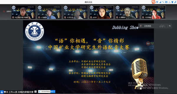 为丰富公司研究生的课外生活,增进同学们对外语的学习兴趣,提高口语水平,2021年11月29日晚7时, 太阳成tyc122cc“语”你相遇,“音”你精彩——研究生外语配音大赛决赛正式拉开帷幕。本届研究生外语配音大赛由太阳成tyc122cc研究生院、共青团太阳成tyc122cc委员会以及太阳成tyc122cc校研会主办,太阳成tyc122cc研究生会、材料与物理公司研究生会承办。本次比赛特邀了公司教师苗燕和辅导员杜宏宇担任专业评审,校研究生会学术部刘畅、材料与物理公司研究生会主席唐健和太阳成tyc122cc研究生会主席秦梦蕾担任大众评审。经过初赛遴选,本次比赛共有17支队伍进入决赛。为加强疫情防控,本次大赛通过腾讯会议采取线上的形式进行。
