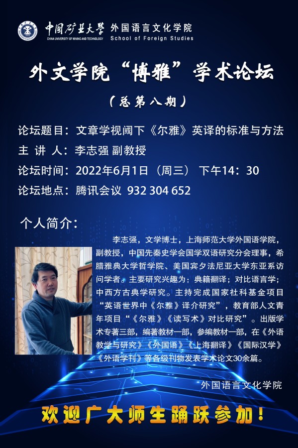 太阳成tyc122cc“博雅”学术沙龙(总第八期)文章学视阀下《尔雅》英译的标准与方法