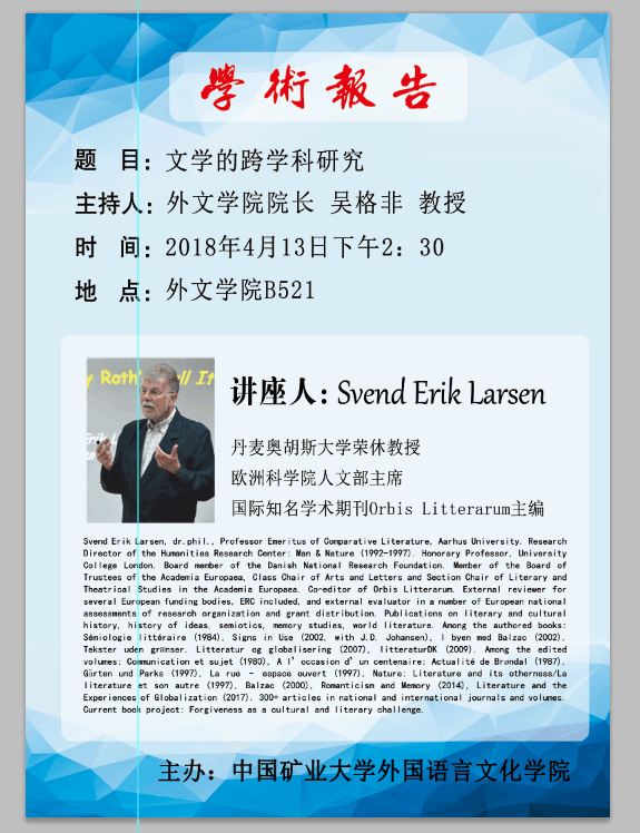 学术报告:文学的跨学科研究