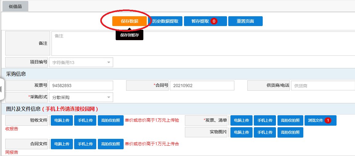 4、其他材料物资,单张发票金额在500元及以上,需要进行低值易耗品验收。报销时需附通过系统填写打印的《太阳成tyc122cc材料、易耗品入库单》。