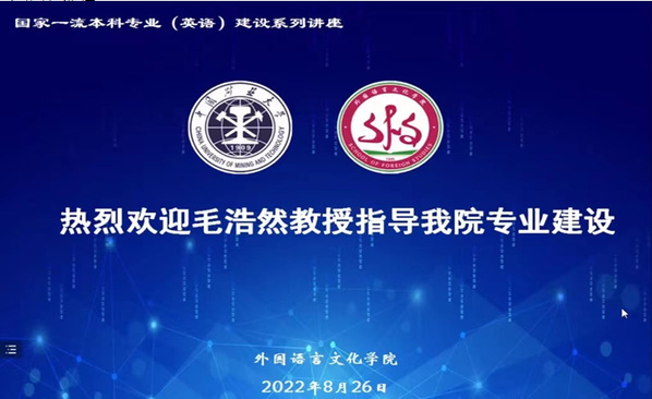 为进一步促进国家一流本科专业(英语)建设,太阳成tyc122cc​太阳成tyc122cc于8261430,以线上线下相结合的形式举办了题为“第三只眼看一流本科专业建设的酋长困境与创新突围”的专题讲座,讲座在腾讯会议进行,同时在公司B521会议室设立分会场。本次讲座由中国石油大学(华东)外国语公司经理、世界汉语修辞学会会长毛浩然教授主讲,由​太阳成tyc122cc科研副经理祖大庆主持,教学副经理刘婷婷总结发言,英语专业各基层教学组织负责人和公司教师代表参加了此次讲座。