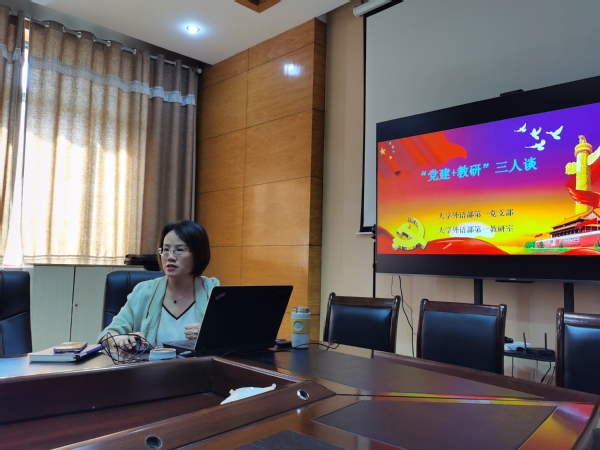 9月22日下午,大外第一党支部与大外第一教研室在文B521联合举办了第一期“党建+教研”三人谈活动。活动由支部书记李淑玲老师主持,刘婷婷副经理、马宝鹏老师和李淑玲老师分别就教学、科研、思想政治学习的相关问题进行了主题发言,大外第一党支部和教研室的老师参加了此次活动。