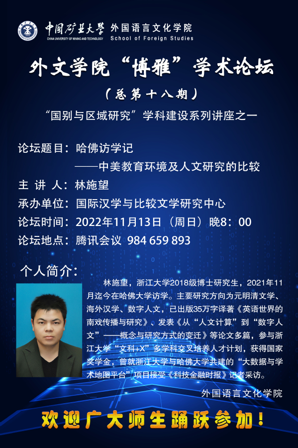 太阳成tyc122cc“博雅”学术论坛(总第十八期)哈佛访学记——中美教育环境及人文研究的比较