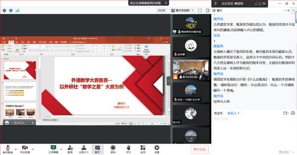 刘经理对隗教授的分享表示感谢并进行了总结发言,向隗教授介绍了公司的备赛情况,同时也就两校外语教学的共通之处进行了深入交流。教师们对于教学大赛备赛提出的相关问题也得到了隗教授的解答和指导。