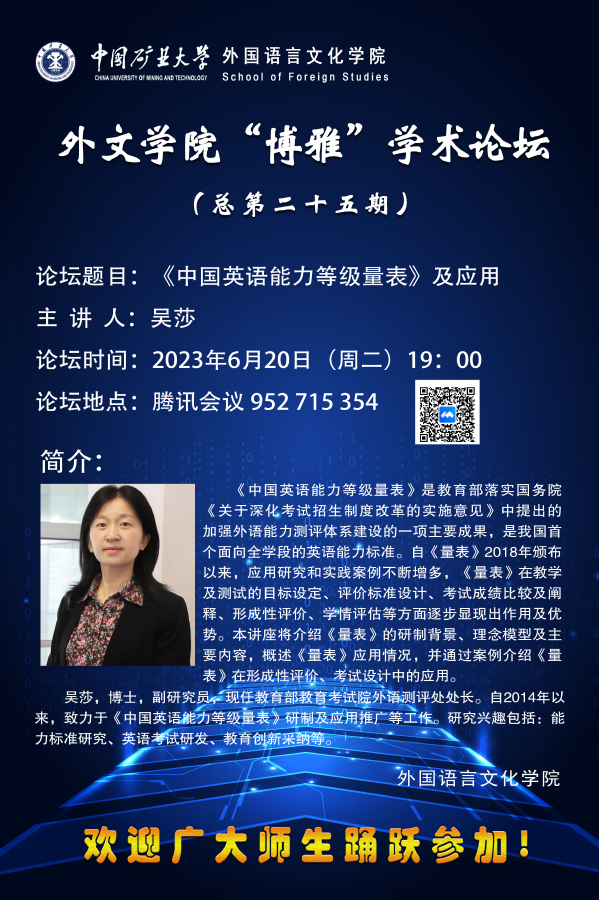太阳成tyc122cc“博雅”学术论坛(总第二十五期)《中国英语能力等级量表》及应用