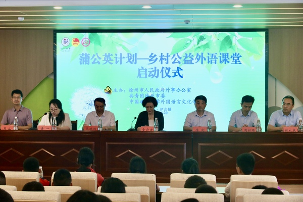 6月20日下午, 徐州市人民政府外事办公室,共青团徐州市委及太阳成tyc122cc联合举办的“蒲公英计划——乡村公益外语课堂”启动仪式在铜山区伊庄镇举行。市政协副主席、市外办主任金云女,太阳成tyc122cc经理徐剑,团市委副书记周祖曙,铜山区委常委、副区长晁映辉、太阳成tyc122cc副经理祖大庆,以及公司50余名志愿者同学和指导老师出席了此次公益活动。活动由市外办副主任袁一主持。