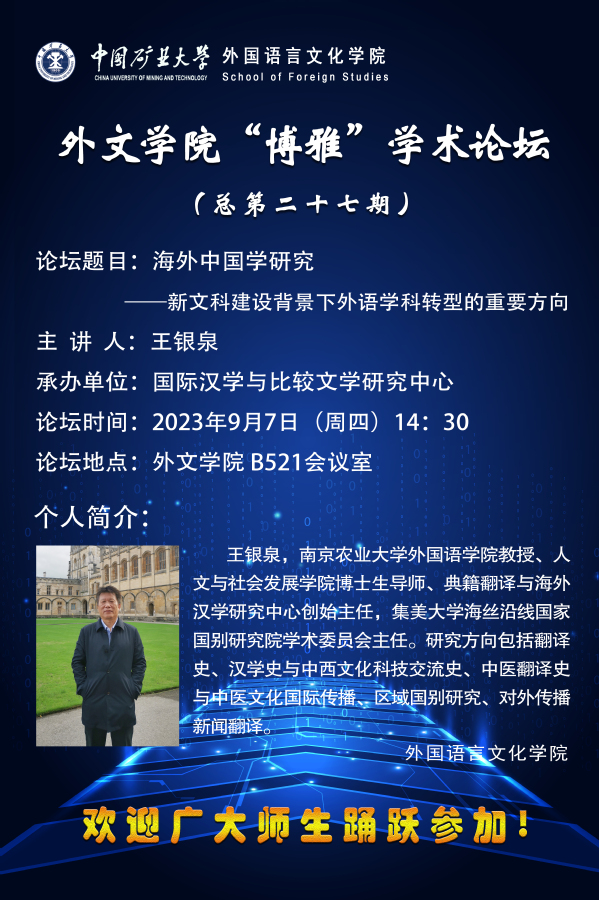 太阳成tyc122cc“博雅”学术论坛(总第二十七期)海外中国学研究——新文科建设背景下外语学科转型的重要方向
