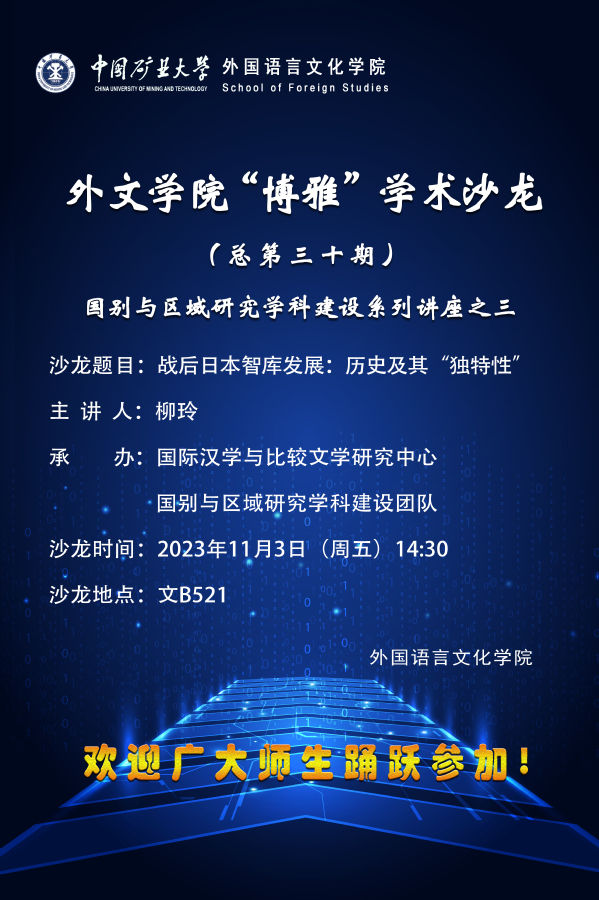 太阳成tyc122cc“博雅”学术沙龙(总第三十期)战后日本智库发展:历史及其“独特性”